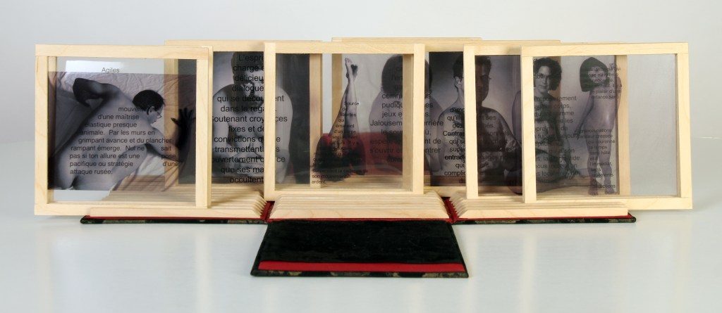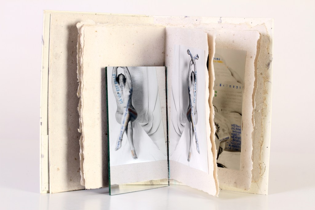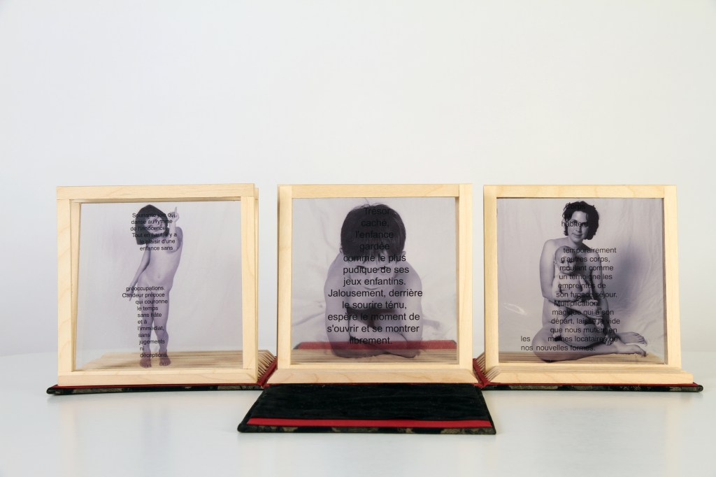 Mon projet traite sur le thème de l’identité. Des expériences marquent notre vie à l’encre sympathique ; événements troublants et fugaces qui à un moment déterminé, inopinément, émergent comme un besoin urgent. C’est cette idée de marques, des éléments déclencheurs, qui a suscité ce projet de livre d’artiste. L’idée est de créer des métaphores avec le corps, les textes phares et l’enveloppe, relations qui témoigneront, en un temps déterminé, d’une vision singulière de la société.