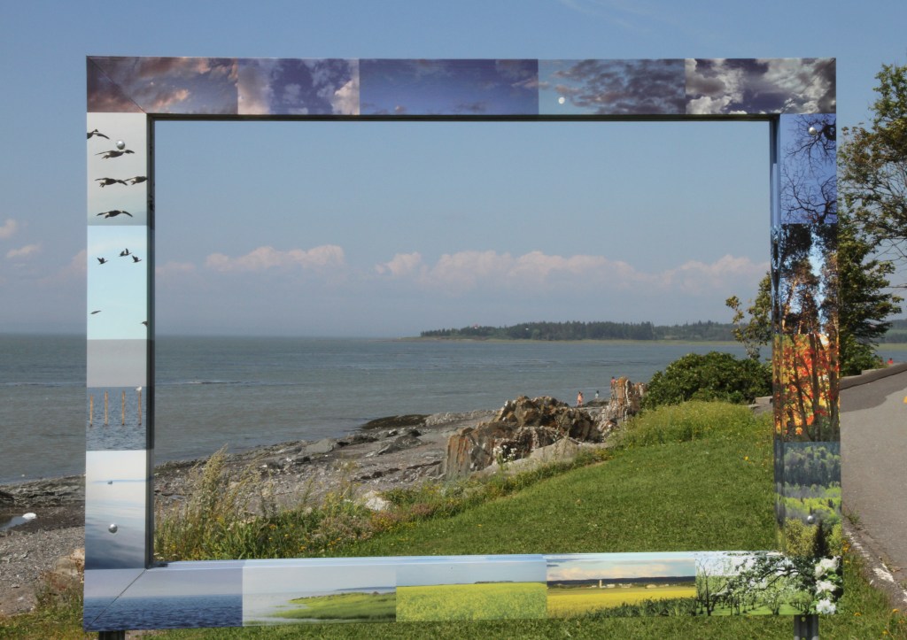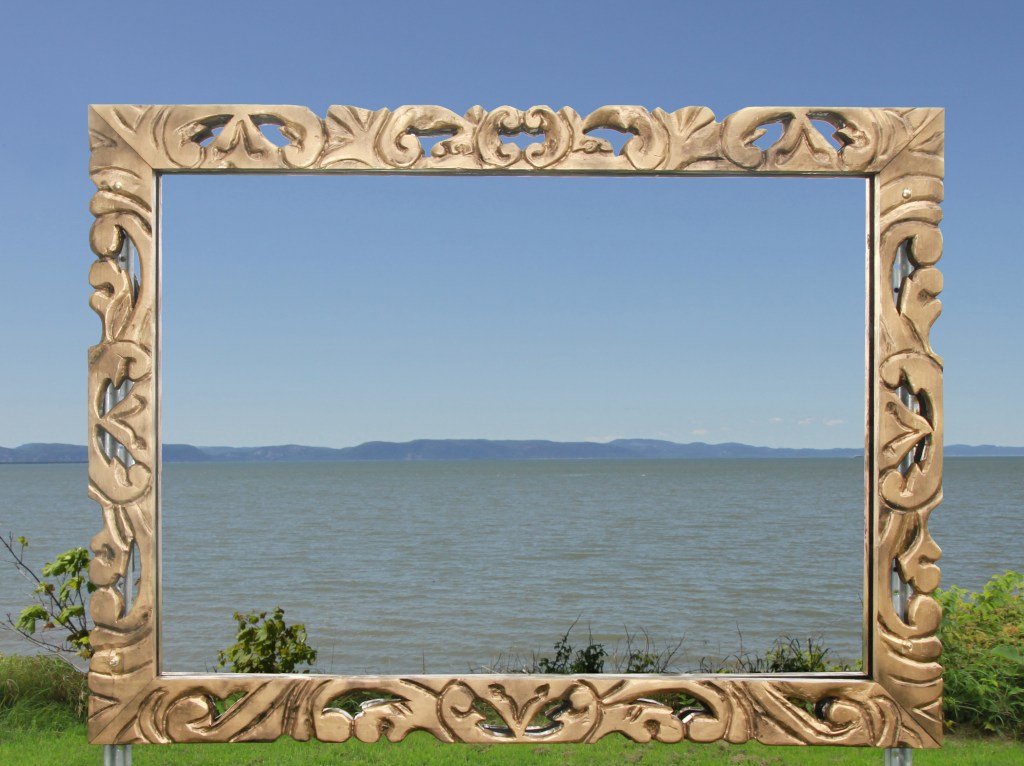 J’ai créé plusieurs « cadres » conçus avec des motifs et matériaux multiples (photographie, peinture, bois,), qui ont été installés dans différents lieux du parc de la Pointe à Rivière-du-Loup. J’ai invité le public à se photographier et à envoyer les images sur la page: https://www.facebook.com/cadremobile/?fref=ts.