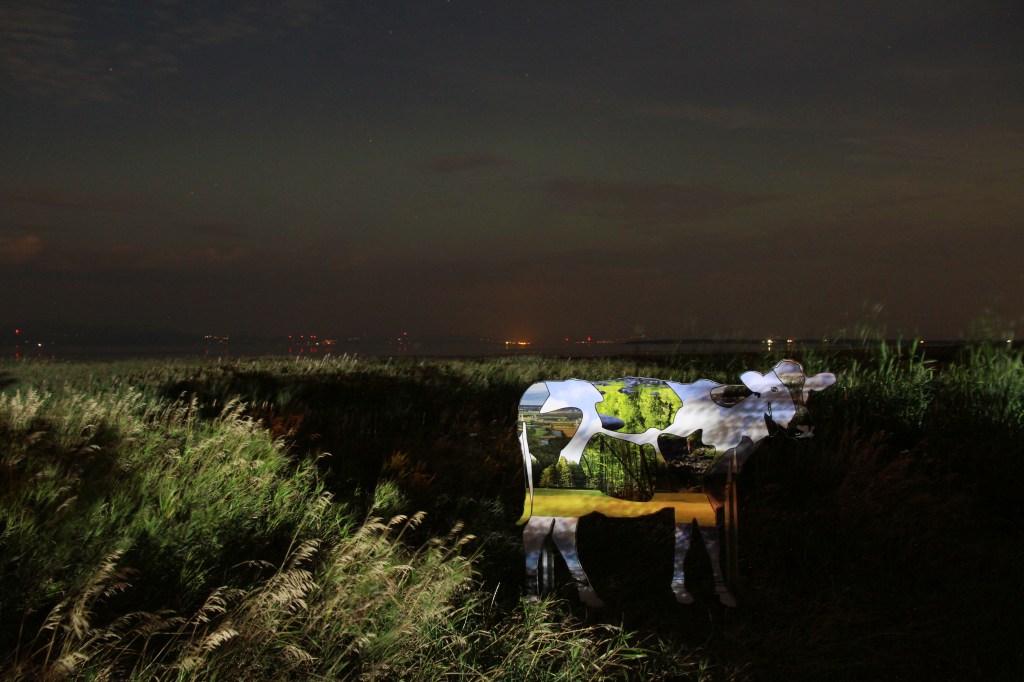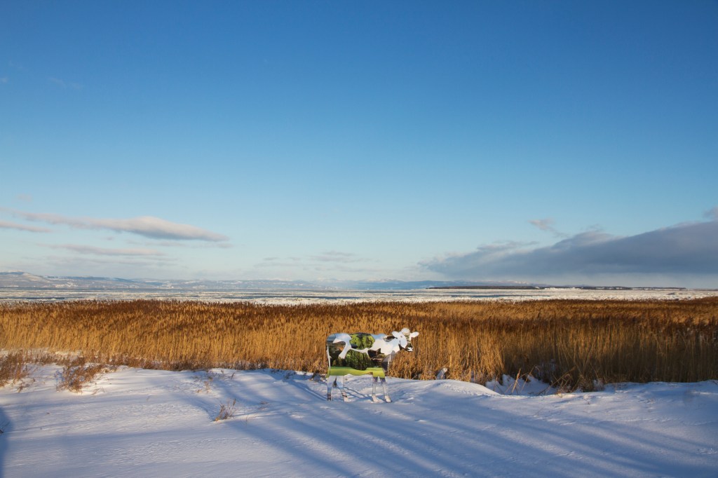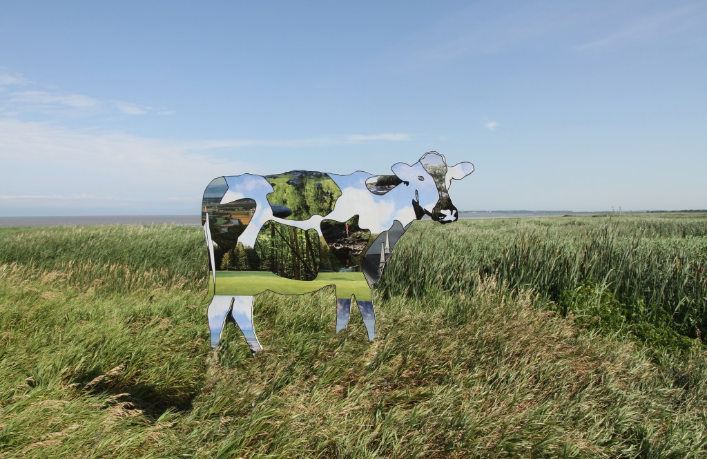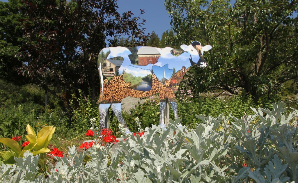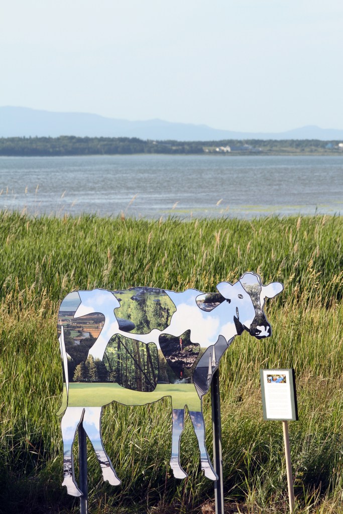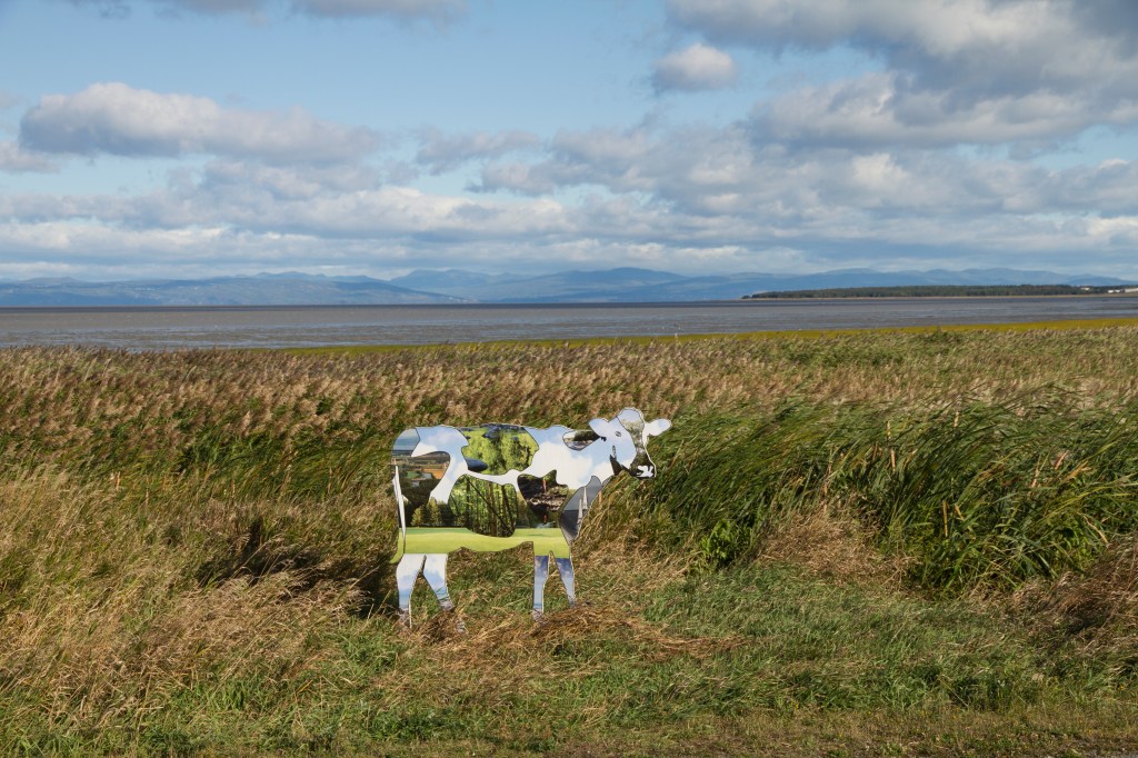 En partant de l’importance de l’agriculture dans notre milieu, j’ai pris la silhouette de la vache et de ses produits comme étant des symboles importants du premier maillon de la chaine alimentaire. Les silhouettes, sorties de leur contexte et intégrées à des lieux passants, ont comme effet de provoquer un effet de surprise, suscitant la curiosité.