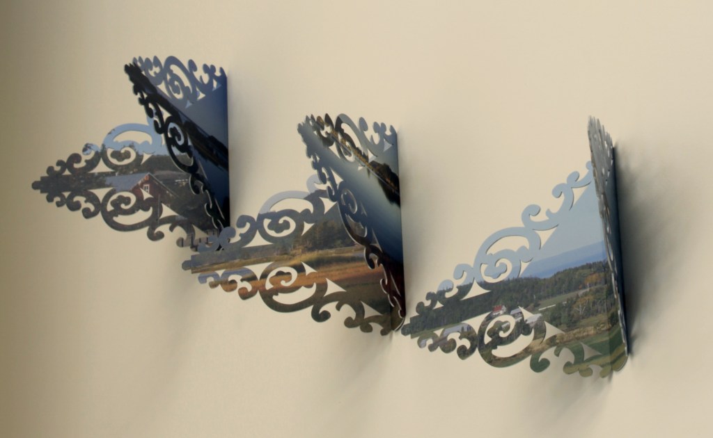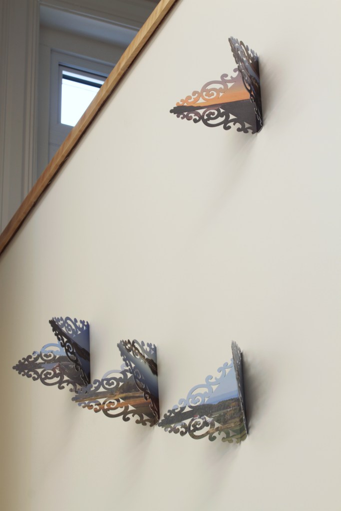 Paysage fictif où les divers aspects qui composent la municipalité s’entremêlent pour récréer la singularité du Bic. Les photographies, les formes, les couleurs se mélangent dans l’espace pour proposer des interprétations différentes et donner des pistes de lecture, pour laisser aller l’imagination.